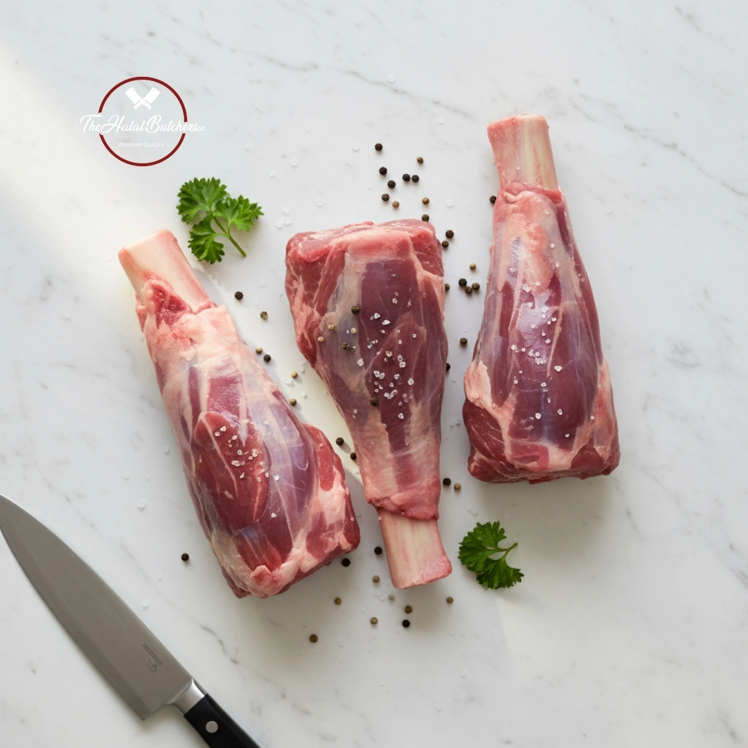 A lamb shank is the lower end of the shank half of the rear leg. Lamb shanks practically melt off the bone when they are slow cooked, and are a popular menu item. Lean on fat but big on flavour, the meaty shank is perfect for braising in a slow, simmering broth.